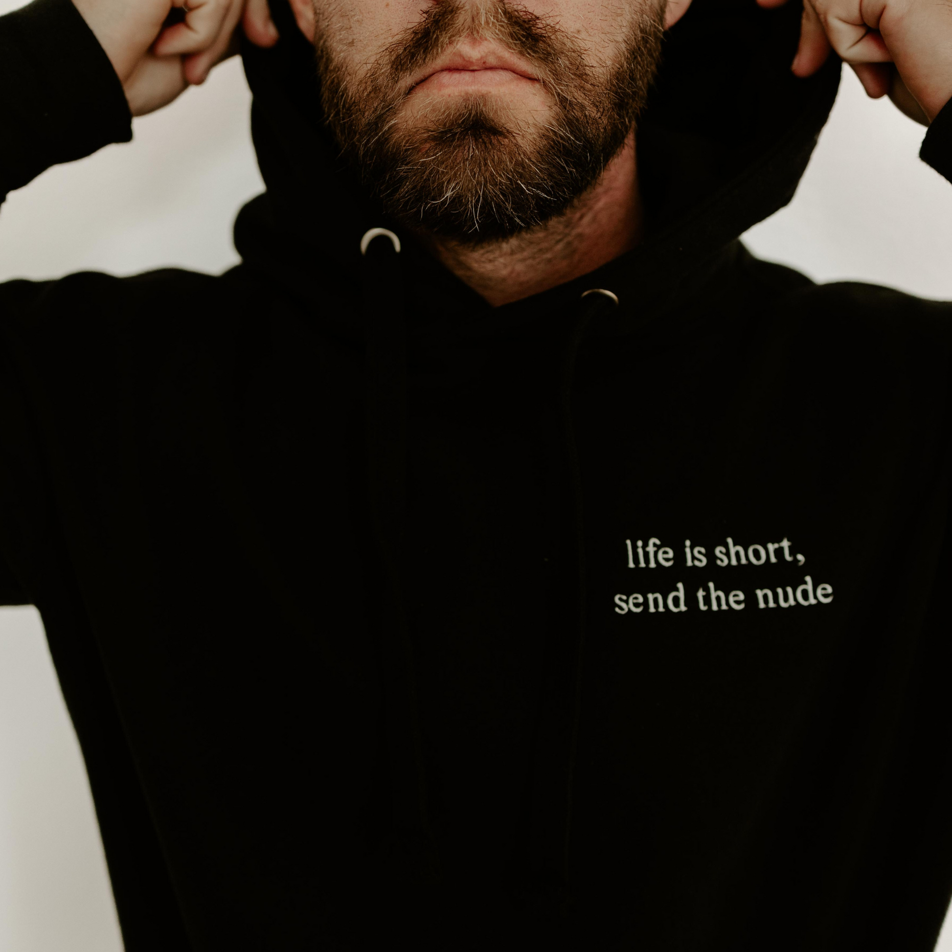 Ready to slay? Life is too short to not take n*des and buy this sweatshirt. Think high-quality cotton with a comfort-fitted hood, matching drawstrings, and a front pocket. Upgrade your look with this dope premium hoodie.